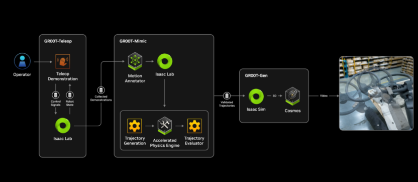 做为一项根本模子,GR00T N1的使用场景极为普遍,正在工业搬运、细密检测、物料包拆等分歧范畴都有优良的表示。通过实正在数据取合成数据,开辟者能够针对具体场景对GR00T N1完成后锻炼,使其适配多种复杂的使命需求。目前,Boston Dynamics(动力)、Agility Robotics、Mentee Robotics等多家领先机械人制制商曾经采用GR00T N1进行贸易化落地摆设。汇正财经资深研究员张轩正在接管采访时谈道:“GR00T N1为机械人具身智能时代的到来奠基了的根本。”他非分特别强调开源策略可能的庞大协同立异潜力,“模子的开源会降低开辟的门槛,推进手艺的普及和使用的多样化,同时也将推进机械人财产链的整合,鞭策创重生态的成立。”英伟达正在通用机械人范畴展现的“组合拳”远不止GR00T N1。现实上,黄仁勋提出的架构是,每家机械人公司最终都必需建立三台计较机。换言之,为了开辟人形机械人,需要三个加快计较机系统来别离处置机械人的锻炼、仿实和运转时(Run time,计较机法式从起头施行到终止施行的运做、施行的期间)。起首,前述提到的GR00T N1大模子,就属于锻炼模子的环节。开辟者能够正在英伟达平台上利用NVIDIA NeMo来锻炼和微调强大的根本和生成式AI模子,也能够间接利用GR00T N1模子。其次,英伟达的数字孪生平台Omniverse连系Cosmos平台,可以或许为测试和优化机械人供给开辟平台和仿实。简单来说,就是正在虚拟数字世界中先建立出机械人,并进行“线上”考试。好比,借帮Omniverse和Issac Sim,开辟者可以或许正在更逼实的虚拟中对机械人进行锻炼、测试和验证,同时借帮Replicator SDK生成仿实数据。从而无效降服保守机械人锻炼中实正在数据缺失的痛点,大幅降低数据采集成本并加快模子的锻炼历程。从适用案例上看,智元机械人操纵Isaac Sim、GR00T-Teleop 和 GR00T-Mimic框架打制出一套高效的仿实数据采集方案,大幅提拔了数据生成效率。银河通用团队则借帮 Isaac Sim上的Isaac Lab组件搭建了一个大规模数据集DexGraspNet,此中包含132万个ShadowHand对5355个物体的抓握动做,数据的质量和多样性都获得提高。