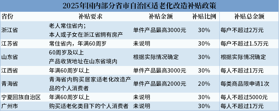 现阶段,适老化的政策风口仍是“进行时”。2025 年,更多省市及自治区正在上一年根本上,继续更新或推出新的补助实施细则。