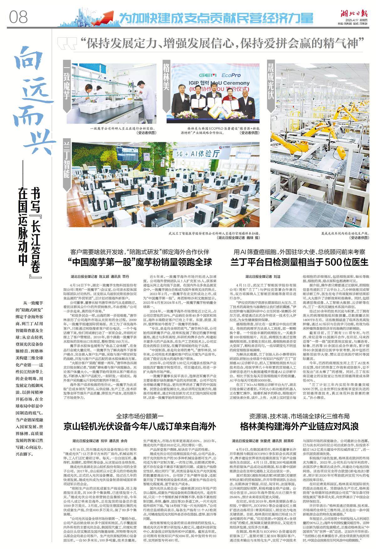 从分歧魔芋的“陪跑式研发”绑定千余海外客商,到兰丁AI用智能筛查惠及全球;从京山轻机登顶光伏设备份额榜首,到格林美建立三维全球化财产链——这些长江经济带上的企业明珠,用成长定力抵御风波,以拼闯开辟市场,正在全球结构中彰显中国制制的底气。当财产链深度融入国度成长、世界脉搏,高质量成长的谜底已然写就:心向远方,兴正在脚下。
